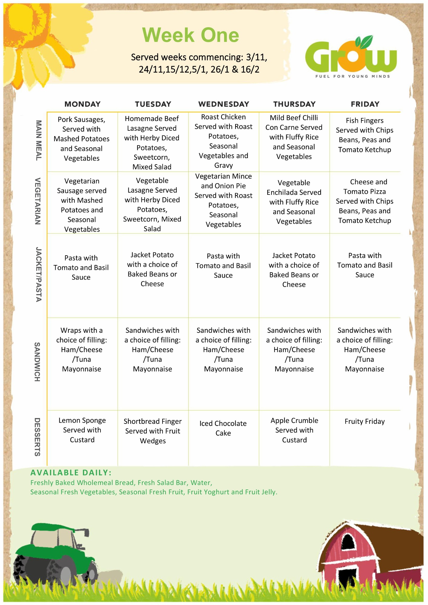 *Please note that menus are subject to change at short notice.